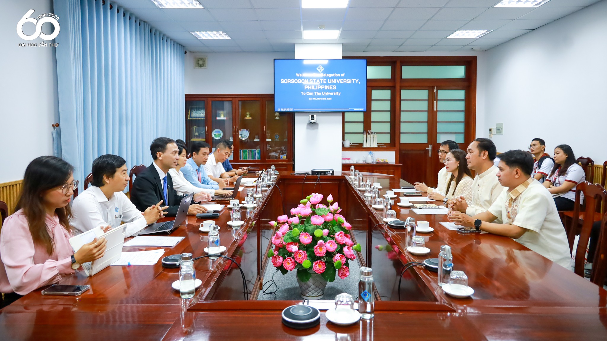 On March 3, 2026, Can Tho University held a working session and signed a Memorandum of Agreement (MoA) with Sorsogon State University (Philippines). Representing Can Tho University were Dr. Le Van Lam, Vice Rector, and representatives from various units.